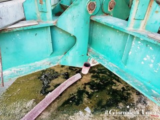 Anche in questo caso il terreno si presenta in uno stato di abbandono e degrado particolarmente preoccupanti. La gru al centro dell'area appare più che danneggiata e, alla sua base, vi è una larga e preoccupante chiazza di olio, o non meglio precisata sostanza.