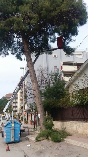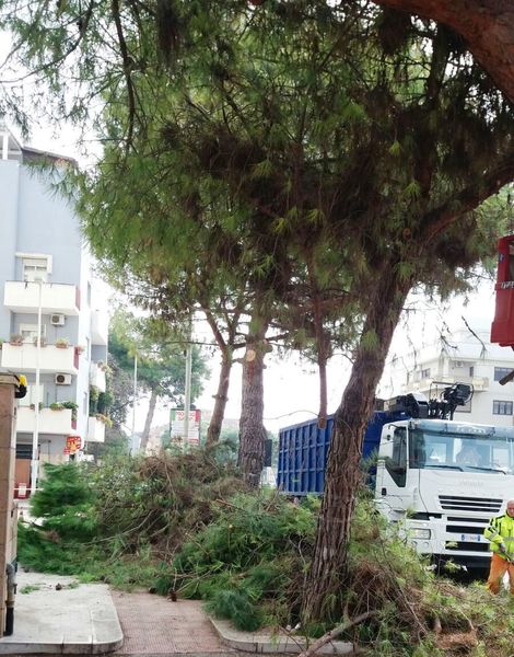 Questa volta si sfronda e non si taglia. La manutenzione del verde pubblico in città sta proseguendo in corso Alcide De Gasperi, all'intersezione con viale Padre Pio, intervenendo sui pini che cingono il presidio ospedaliero di Trani. In nessun caso si sta procedendo alla soppressione degli alberi, dei quali si sta invece badando a realizzare un'adeguata potatura. Nel frattempo, prosegue anche la riparazione di alcune parti danneggiate di marciapiedi, ancora lungo via Malcangi.