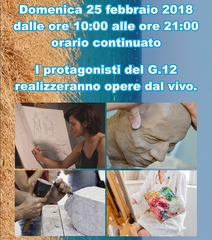 Nell’ambito della mostra d’arte contemporanea “G 12”, che sarà ospitata fino al 14 marzo 2018 presso il Palazzo delle arti Beltrani, ecco i prossimi appuntamenti che si svolgeranno sabato 24 e domenica 25 febbraio.