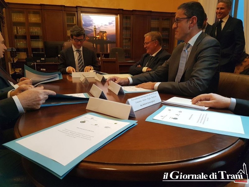 È stato firmato il protocollo d’intesa sull’edilizia giudiziaria che, attraverso l'erogazione di una cospicua somma per il completamento di Palazzo Carcano, la messa in sicurezza di palazzo Gadaleta e l'adeguamento degli altri immobili, “blinderà” il Tribunale a Trani. Il protocollo è stato firmato tra Ministero della giustizia, Agenzia del demanio, Tribunale di Trani, Procura della Repubblica presso il Tribunale di Trani, Comune di Trani e Provveditorato interregionale alle opere pubbliche per la Campania, Molise, Puglia e Basilicata.