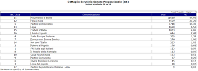 A trascinare il successo di Quarto, il risultato del MoVimento 5 Stelle che ha doppiato Forza Italia al Senato con 11650, voti contro i 5500 del partito di Berlusconi e gli appena 3700 di un Partito democratico che, a livello di elezioni politiche, ha fatto registrare un flop particolarmente preoccupante. Da segnalare i 1690 voti della Lega, che fa meglio di Fratelli d'Italia che supera di poco i 1000.