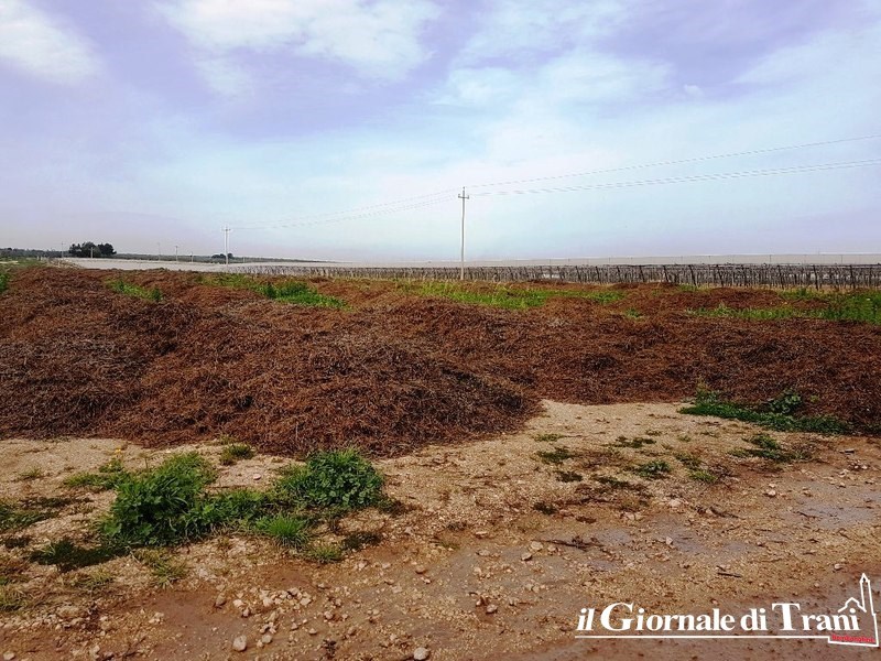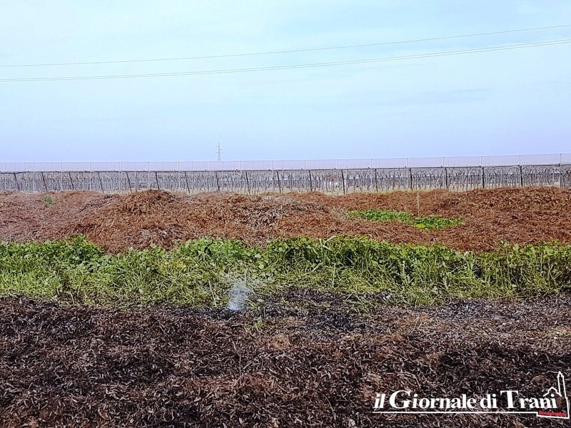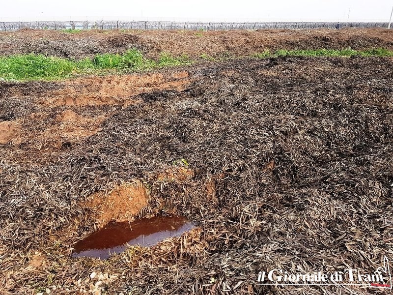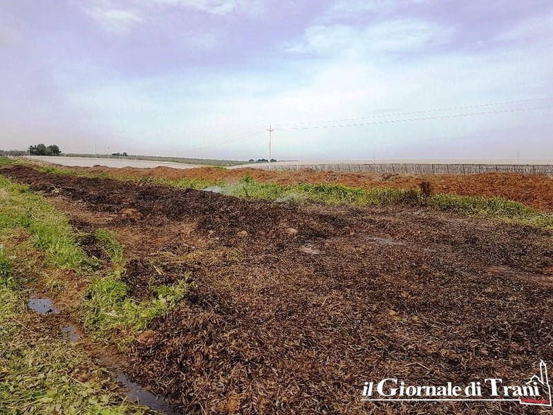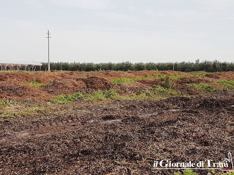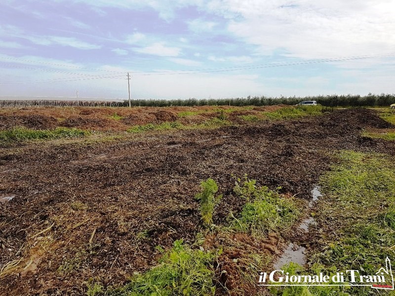 Siamo in contrada Santo Dugno, nei pressi di via Sant'Angelo e della strada provinciale Andria-Bisceglie, in territorio di Trani. Su un terreno di 8000 metri quadrati, una depressione confinante con una cava, sono stati bruciati una gran quantità di fogliame e residui di frantoio.