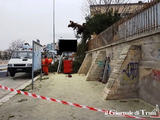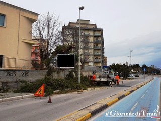 Stamani gli operai di una ditta specializzata hanno tagliato buona parte dell'albero, facendo tornare visibile la struttura pubblicitaria che ne era diventata il suo sostegno, prevenendone la più che probabile caduta.