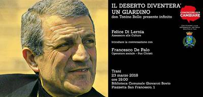 “Il deserto diventerà un giardino – don Tonino Bello: presente infinito” è il titolo del settimo appuntamento di “Conoscere per cambiare”, ciclo di incontri ideati e promossi dall’Assessorato alle culture della Città di Trani.