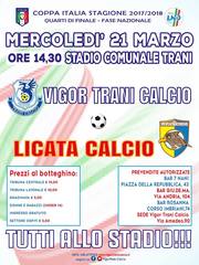 Andata dei quarti di finale di Coppa Italia di eccellenza nazionale, finalmente ci siamo. La Vigor Trani ospita oggi (14.30) i siciliani del Licata, squadra seconda in graduatoria nel girone A dell'eccellenza siciliana. Da tenere d'occhio soprattutto il reparto avanzato gialloblù composto da Cannavò, Rizzo e Tumbarello.