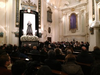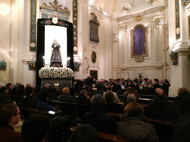 Un pubblico variegato, tra giovani e meno giovani, attento e commosso, che ha potuto rivivere una tradizione persa da anni e che ha dato ragione alla Fondazione Seca e a coloro che hanno collaborato alla realizzazione, il Comune di Trani – Assessorato alle Culture, l’Arciconfraternita della Santissima Addolorata, la P.Mascagni, orchestra esecutrice e la DS Restauri di Giuseppe Storelli, che hanno fortemente voluto riportare in città un momento raccolto, ai piedi della Vergine, nella chiesa simbolo dei riti pasquali.