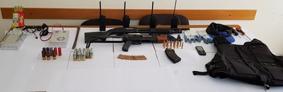 Le perquisizioni, estese ai mezzi in uso allo stesso, hanno permesso di recuperare 4 apparati ricetrasmittenti, presumibilmente utilizzati per evitare di essere intercettati; all’interno di un capannone sito nell’area industriale di Margherita di Savoia, risultato essere nella sua disponibilità, sono state inoltre recuperate la vettura Alfa Romeo utilizzata per commettere la rapina del 26 febbraio, una vettura Audi A4 SW di provenienza estera, un giubbotto antiproiettile, una apparecchio Jammer, disturbatore di frequenze di elevato potenziale, nonché, abilmente occultati in un pozzetto, un fucile a pompa con matricola abrasa ed un fucile mitragliatore kalashnikov, con relativo munizionamento.