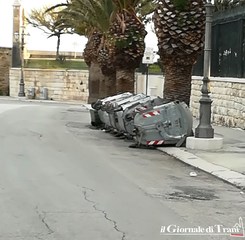 L'unico atto vandalico che è stato registrato è quello relativo a via Statuti Marittimi, nei pressi dell'ingresso secondario, chiuso, della villa comunale, dove ignoti hanno rovcesciato dei bidoni della spazzatura. Gli stessi, o forse altri soggetti, hanno anche aperto il cancello per entrare nella villa comunale.