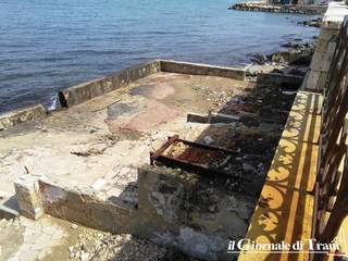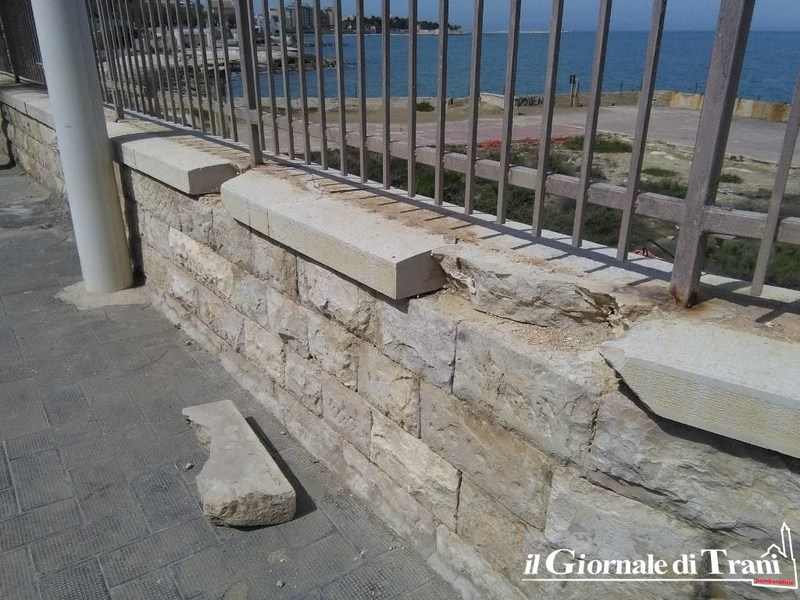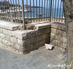 E non bastano, a completare il quadro, le ringhiere arrugginite dalla salsedine. Ci sono anche pericolosi blocchi di pietra che sono stati fatti cadere dal muretto di cinta sul marciapiede.