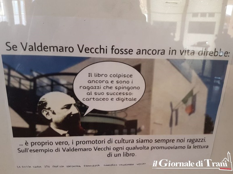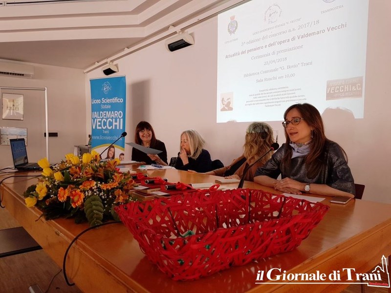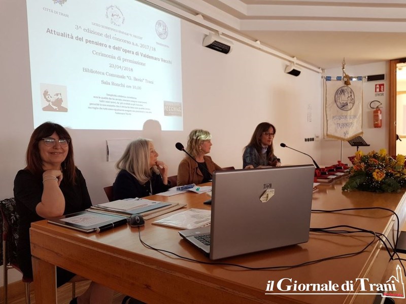 Sono stati premiati questa mattina, presso la sala Ronchi della biblioteca comunale “G. Bovio” di Trani, i vincitori della terza edizione del concorso “Attualità del pensiero e dell’opera di Valdemaro Vecchi”, indetto dal Liceo Scientifico “Vecchi” con il patrocinio del Comune di Trani e la collaborazione dell’associazione culturale Traninostra.