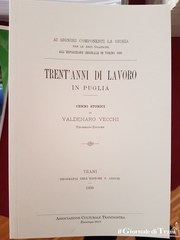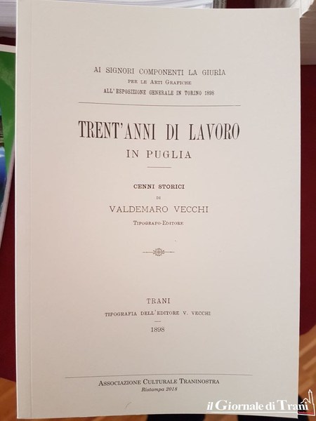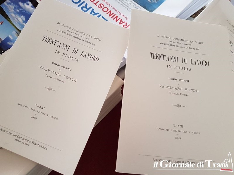 Nel corso dell’evento è stata presentata la ristampa, curata dalla suddetta associazione, del libro “Trent’anni di lavoro in Puglia” scritto e edito nel 1898 da Valdemaro Vecchi in occasione della sua partecipazione all’Esposizione Generale di Torino e un giovane editore, Luigi Bramato, ha dialogato sull'’ "importanza di investire in cultura. L’editoria contemporanea”.