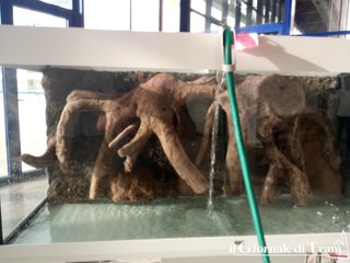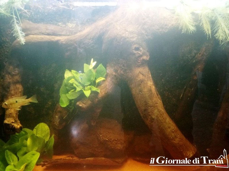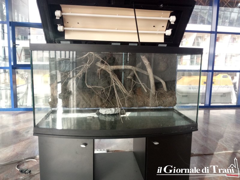 Infatti, il tranese Fabrizio Amicone ha creato due sfondi naturalistici, autoprodotti, in vetroresina, di due acquari con legni naturali e lavorati dal mare, silicone e polvere di carbone vegetale e rocce. I legni naturali sono stati raccolti proprio sulla spiaggia della località Boccadoro-Ariscianne di Trani.