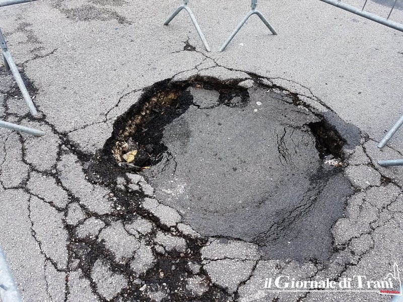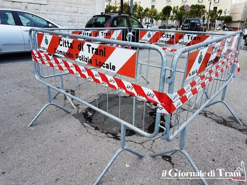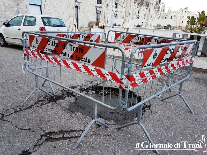 Fra le conseguenze del forte temporale di ieri mattina si registra l'apertura di una voragine tra via Statuti Marittimi e piazza Plebiscito. Un quadrilatero di transenne circoscrive il vistoso cedimento, probabilmente favorito da una precedente infiltrazione d'acqua che, associata, all'evento meteorologico di ieri, ha determinato quel parziale sprofondamento della sede stradale.