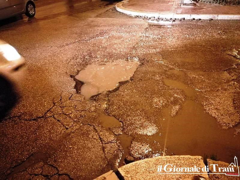 Nei giorni scorsi, dopo tante proteste, una piccola colata di asfalto era stata versata nella speranza che il cedimento resistesse. Poi, però, è sopraggiunta la pioggia torrenziale di qualche mattina fa e quella colmatura si è tagliata come il tonno con un grissino della proverbiale pubblicità.