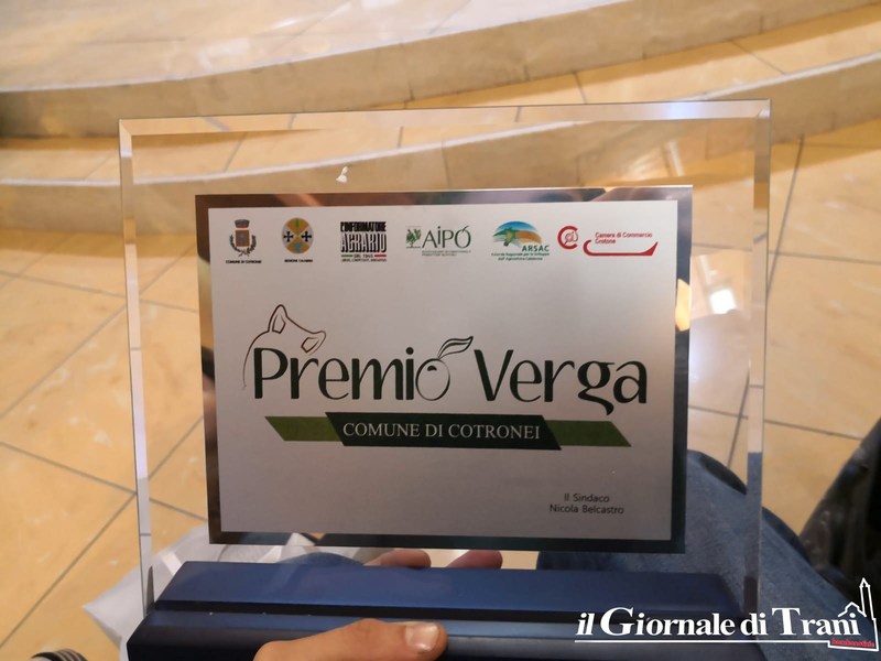Il Movimento turismo rurale di Trani si è aggiudicato il premio Verga, del comune di Cotroneri, in Calabria, per il progetto dell’olio sociale della città di Trani. A ritirarlo, Francesco Valenziano, presidente del Movimento, che ha ringraziato il sindaco di Cotronei, Nicola Belcastro, e il Presidente della Regione Calabria Mario Oliverio. Nel corso della premiazione, Valenziano ha spiegato in cosa consiste il progetto dell’olio sociale della Città di Trani. «Sono onorato di questa vittoria» ha detto Valenziano, che nei giorni scorsi aveva presentato il progetto alla cittadinanza.