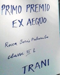 Nella sala Gusmani del palazzo Antonimi, sede dell’Università degli Studi di Udine, in una emozionante serata allietata dal pianoforte di Barbara Sabbadini e dal violino di Gabriele Saro, nei giorni scorsi i ragazzi della 3^L della scuola secondaria di I grado “Rocca-Bovio-Palumbo” di Trani, plesso Bovio, sono stati insigniti del primo premio, ex aequo (consistente in diversi libri e una stampa del quotato artista friulano Ciliberti), con altre tre scuole del territorio italiano del concorso nazionale “Giulietta e Romeo: la magia dell’amore”, indetto dall’associazione “Giulietta e Romeo in Friuli”, dall’Università degli Studi di Udine, dal Club Unesco e dall’Associazione Culturale Sicilia - Friuli Venezia Giulia..