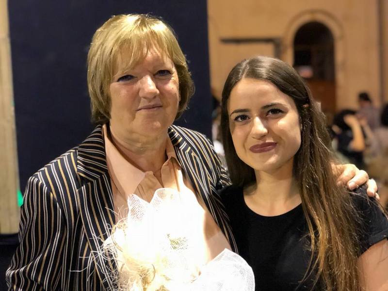 A fine spettacolo, Teresa Friggione, anch'ella commossa, si è fatta immortalare con Carola Stella, la studentessa che ha egregiamente interpretato proprio la vedova di Alfredo Albanese sulla scena: «Se riesco a perdonarli? I primi che dovrebbero farlo sono i morti che hanno lasciato sull'asfalto in quegli anni - ha recitato la ragazza in un silenzio surreale - e continuano a lasciare. Noi, i familiari delle vittime, ancora non riusciamo a perdonarli. La nostra è una difficile misericordia».