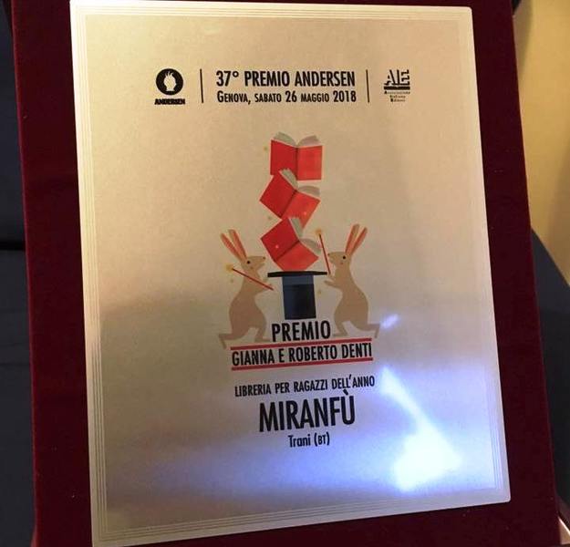 Alla libreria Miranfù, quindi ai titolari Enzo Covelli ed Elisa Mantoni, sarà conferita dalla Città di Trani la civica benemerenza “Ordinamenta maris”. La libreria, infatti, ha portato lustro alla città aggiudicandosi il prestigiosissimo premio Andersen “Gianna e Roberto Denti”, come libreria per ragazzi dell’anno. Covelli e Mantoni hanno ritirato il premio a Genova nei giorni scorsi.