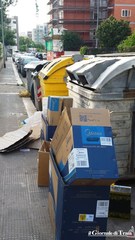 «Sono molto indignata per tale situazione che si ripete da mesi e che non permette neanche il passaggio sul marciapiede (tenendo conto che transitano anche bambini, persone anziane) ed impedisce di depositare i sacchetti di rifiuti, plastica, carta e vetro. Senza contare, poi, gli esercenti che depositano, senza alcun criterio ed a qualsiasi orario, gli imballaggi relativi ai prodotti delle rispettive attività e rifiuti vari.