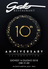 Giovedì 14 giugno Gallo Restaurant, in via Statuti Marittimi 48/50, sul porto di Trani, festeggerà i suoi dieci anni di attività.