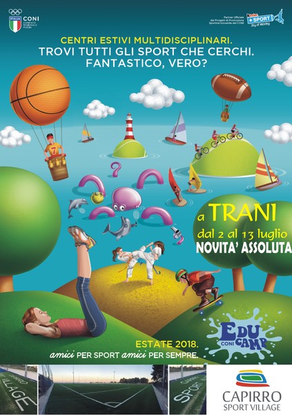 A Barletta l’Educamp è iniziato lunedì 11 giugno al Circolo Tennis “Hugo Simmen” e andrà avanti per tre settimane. Si è già registrato il gran pienone con oltre 400 presenze fino a fine mese. Previste poi altre due settimane (dal 2 al 13 luglio) allo Sport Village Capirro di Trani (in entrambi i casi con orari 8.30-16.30). Qui invece, è il primo anno che l’Educamp si affaccia all’ombra della cattedrale, e ci sono ancora buone possibilità per iscriversi. Le attività previste a Barletta: basket, volley, judo, pallamano, calcetto, tennis, nuoto, ginnastica artistica, mountain bike, scacchi, yoga, scherma, tiro con l'arco, football americano. In programma anche sezioni dedicate al teatro-danza e al binomio creativo arte e immagine. Momenti particolari sono anche quelli della merenda e del pranzo. Le due settimane di Trani ricalcheranno l’esperienza barlettana (nuoto escluso). Per entrambi gli Educamp vi è anche la collaborazione con le Amministrazioni Comunali di Barletta e Trani – Assessorato ai Servizi Sociali. Confermata la convenzione con l'Angsa (Associazione Nazionale Genitori Soggetti Autistici) per l'integrazione di bambini autistici con l'ausilio di psicologi che lavorano a stretto contatto con gli educatori sportivi. Importante anche l’apporto dei ragazzi del Liceo Scientifico Sportivo “P. Mennea” nell’ambito delle attività di alternanza scuola/lavoro. Gli altri Educamp in Puglia sono previsti a Bari, Lecce e Statte (TA).