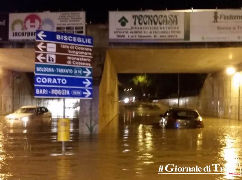 Puntuale come un orologio svizzero, il sottovia di via Pozzo piano si è totalmente allagato in seguito al temporale che si è rovesciato su Trani intorno alle 23. Nonostante i semafori rossi e l’evidente situazione di allagamento già in atto, i conducenti di due vetture hanno provato ad attraversare il tunnel finendovi imprigionate nell'acqua, dell’altezza di almeno 80 centimetri.