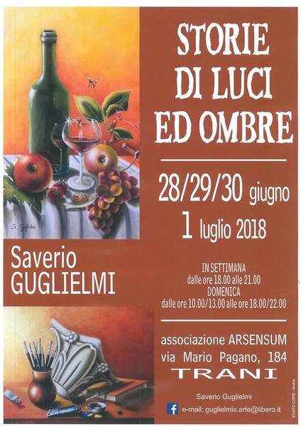 “Storie di luci ed ombre”. Così l’artista Saverio Guglielmi racconta i suoi dipinti che durante il percorso artistico ha portato a perfezionare nel suo «iperrealismo fantastico», così descritto dai vari critici che lo hanno conosciuto. Un’esposizione che vi immergerà in una fantasia di colori giocando con le geometriche proiezioni e le sue nature morte. Le ombre infatti sono allo stesso momento le luci riflesse in negativo, e questo gioco ha così tanto colpito Saverio Guglielmi da dedicarvi una sua personale.