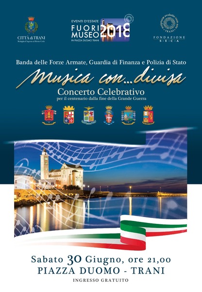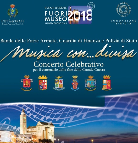 Nella magnifica piazza Duomo, a Trani, più di novanta elementi si esibiranno in “Musica Con…Divisa”, concerto celebrativo per il centenario dalla fine della Grande Guerra.