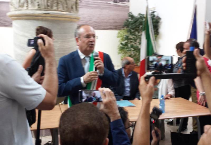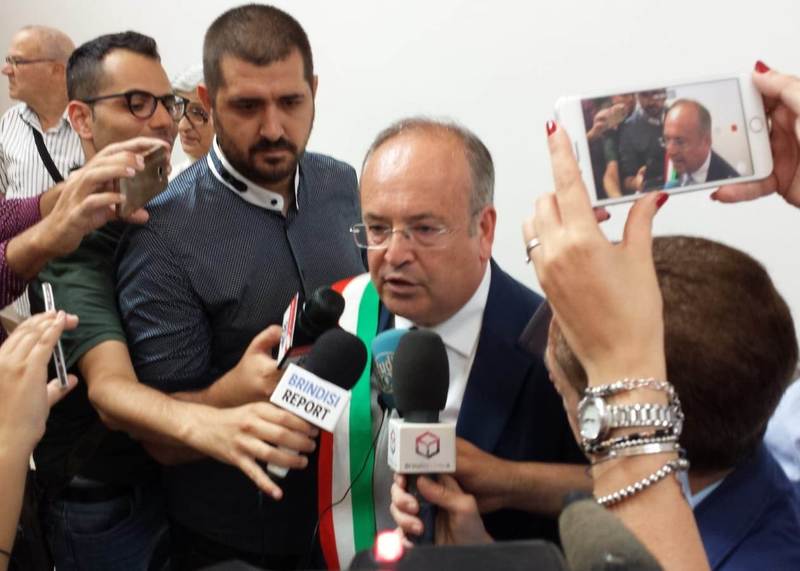 Alle 17.06 Riccardo Rossi è stato proclamato ufficialmente sindaco di Brindisi, al culmine della cerimonia durante la quale il commissario straordinario uscente, Santi Giuffrè, ha personalmente cinto con la fascia di primo cittadino il 54enne ingegnere tranese.