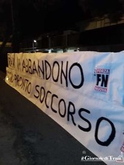 Sono stati collocati nella notte, da attivisti di Forza nuova, lungo viale Padre Pio, striscioni relativi all'ospedale di Trani dal testo inequivocabile: «Trani in abbandono, addio Pronto soccorso». Una forte denuncia alle istituzioni, politiche e sanitarie, per alimentare il disappunto della cittadinanza contro il presunto, progressivo depauperamento del San Nicola Pellegrino.