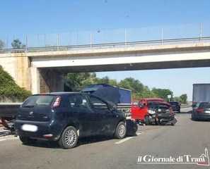 Sono almeno tre le vetture coinvolte nel tamponamento avvenuto sulla strada statale 16 bis, in direzione nord, fra gli svincoli Trani Boccadoro e Barletta Madonna dello Sterpeto. Fortissimi i disagi per la circolazione, a causa dei rallentamenti resisi necessari sulla carreggiata occupata dai veicoli incidentati: la coda è stimabile nell'ordine dei 3 chilometri.