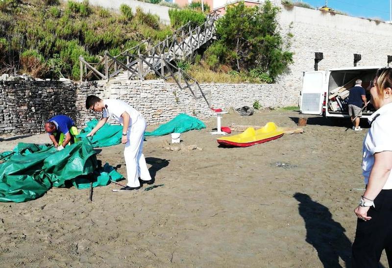 Gli agenti della Polizia locale e i militari dell'Ufficio locale Marittimo hanno proceduto stamani allo sgombero, presso la seconda spiaggia, di un gazebo abusivo contenente al suo interno canoe, sedie sdraio, tavolini ed altro materiale per la balneazione.