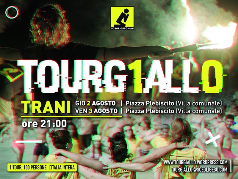 Infine, i ragazzi del Tour giallo saranno anche coinvolti in una grande marcia organizzata dalla chiesa cristiana di Trani, Pieno evangelo, insieme a comunità di altre città.