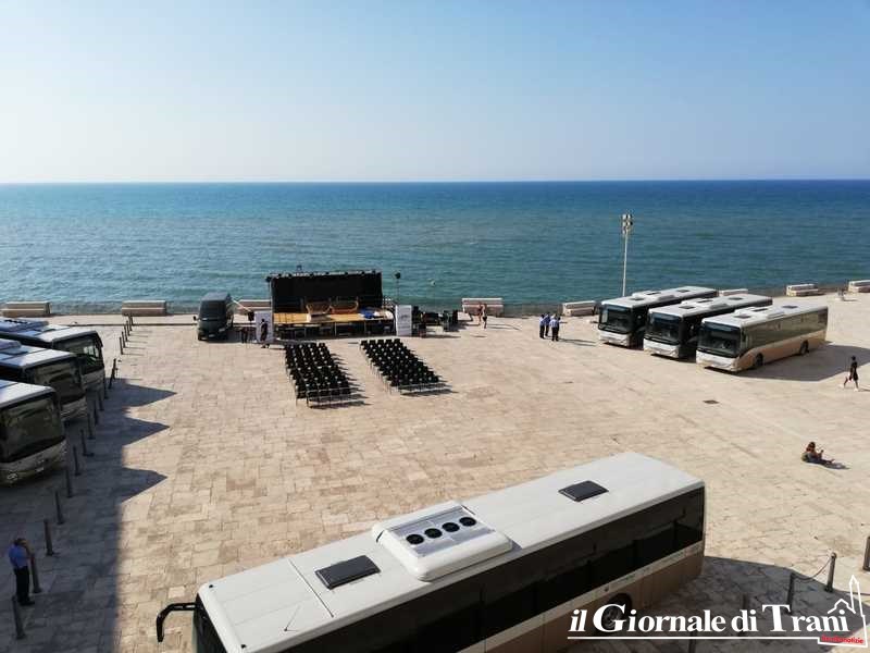 Infatti, piazza Duomo oggi fa notizia, più che per i 7 dei 33 pullman nuovi di zecca di Stp, per l'installazione di un palco, con tanto di divanetti per un talk show, ed ovviamente una platea, a margine del vernissage dei nuovi mezzi pubblici della Società dei trasporti provinciale.