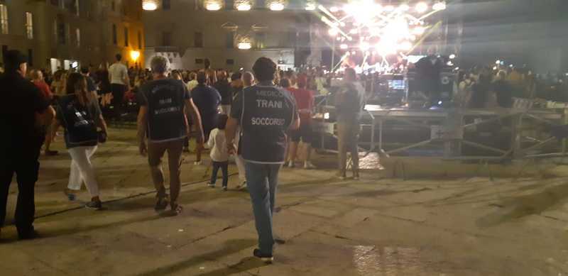 Nessun problema di ordine pubblico si è verificato, anche grazie alla presenzxa di 22 operatori di Trani soccorso, con relativi mezzi. In particolare: 4 medici, gratuitamente all'opera; 1 infermiere; 2 ambulanze; 1 mezzo antincendio; 4 operatori addetti all'antincendio a rischio elevato.