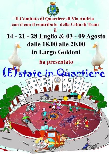 Con l’evento “Basket in quartiere” si è conclusa la kermesse di eventi “(E)state in quartiere”, organizzata dal Comitato di quartiere di Via Andria con la collaborazione delle associazioni presenti sul territorio, che ha avuto inizio il 14 luglio ed ha ottenuto un costante aumento di partecipazione.