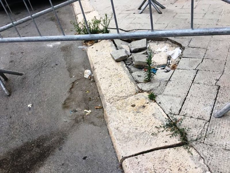 Il marciapiede è stato riparato questa mattina, dopo le sollecitazioni del cittadino alla stampa locale.