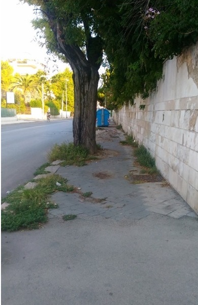 A dirla tutta, se si percorre questa via, oltre allo spettacolo desolante dei tronchi mozzati, ci sono aiuole prive di alberi ma piene di erbacce, cipressi agonizzanti, alberi su cui non viene effettuata alcuna manutenzione e profonde buche transennate, marciapiedi impraticabili, che per lunghi tratti rendono proibitivo il transito pedonale. Non meno problematica è la mobilità in zona Capirro, ove insiste una pista ciclabile dissestata e perennemente invasa da aghi di pino, a testimonianza di una scarsa manutenzione.