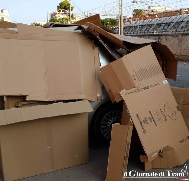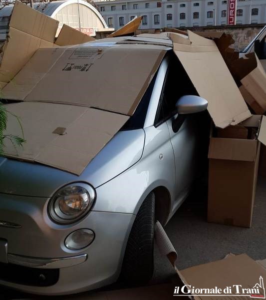 Sono intervenuti sul posto i carabinieri, dopo una segnalazione alla Polizia di Stato, per i rilievi di quanto accaduto questa notte all'indirizzo della vettura del consigliere comunale Raffaella Merra, totalmente avvolta da cartoni.