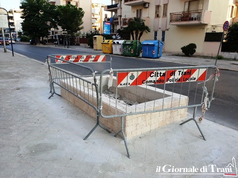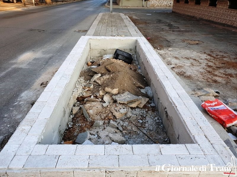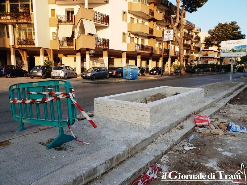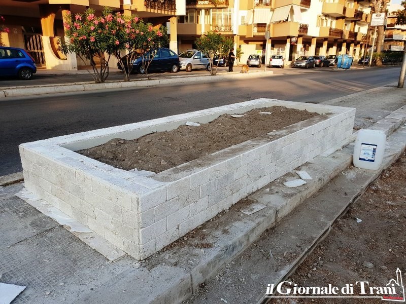 Tre fioriere al posto di altrettanti alberi tagliati. È quanto sta accadendo in via Malcangi: Due sono in fase di realizzazione, a breve distanza l'una dall'altra, nei pressi dell'incrocio semaforico con viale De Gemmis; la terza è a pochi metri dall'intersezione con via San Magno.