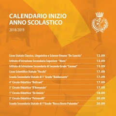 In mezzo, il calendario è il seguente: Istituti d'istruzione secondaria superiore Aldo Moro e Cosmai, 13 settembre; Liceo scientifico statale Valdemaro Vecchi, scuola media Baldassarre, Terzo circolo D'Annunzio e Quarto circolo Beltrani, 17 settembre; Primo circolo De Amicis, 18 settembre.