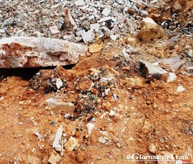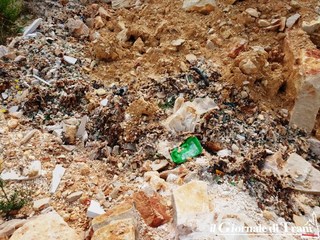 Siamo nella cava fumante che, in realtà non fuma più. Ad onor del vero, si avverte ancora leggermente quella sensazione olfattiva fastidiosa, ma tutto appare ridotto davvero ai minimi termini rispetto a quanto accadeva un anno fa. E lo stato dei luoghi sembra confermi quanto di Gregorio aveva recentemente riferito, anche sulla base delle relazioni tecniche nel frattempo rilasciate dai consulenti: plastica e vetro in grande quantità.