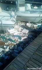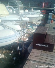 Un gran numero di rifiuti e detriti, in proporzioni assolutamente senza precedenti e solo fino ad un certo punto giustificabili con il forte vento, si è riversato ieri pomeriggio nei pressi di un pontile della darsena comunale, tra le imbarcazioni da diporto, galleggiando a breve distanza dagli ormeggi.