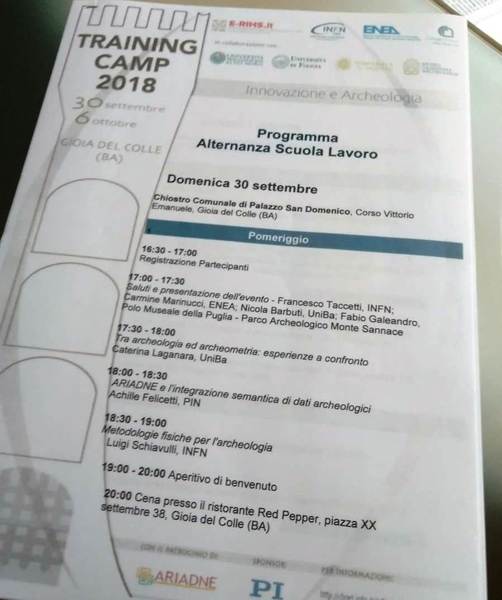 Si tratta di un evento organizzato da INFN-CHNet ed ENEA per conto del nodo italiano di E-RIHS (European Research Infrastructure for Heritage Science, www.e-rihs.eu, in collaborazione con il Polo Museale della Puglia - Museo Nazionale Archeologico di Gioia del Colle, le Università di Bari, Foggia e del Salento ed il Liceo Statale Classico, Linguistico, Scienze Umane “F. De Sanctis” di Trani, scuola capofila della Rete dei Licei Classici di Puglia, e con il patrocinio di ARIADNE (Infrastruttura europea per l’archeologia digitale, www.ariadne-infrastructure.eu).