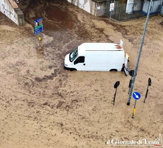 Quello che si vede nelle foto dall'alto non è un furgone impantanato, ma è proprio quello di Trani soccorso, nel cui vano erano le pompe Idrovore che hanno ininterrottamente aspirato l'acqua dalla zona.