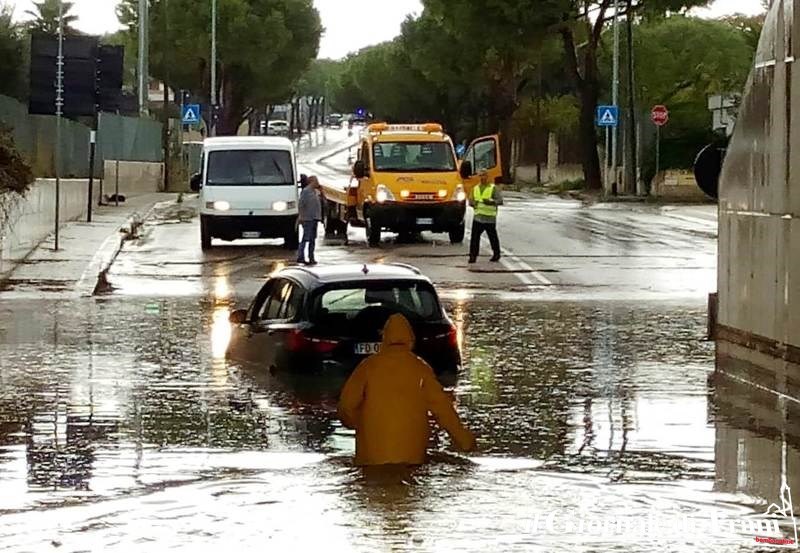 Questi ieri, per la prima volta, hanno interdetto alla circolazione l'ultimo tratto di via Falcone compreso tra via Bachelet e la rotatoria allagata, con obbligo di svolta a sinistra in via Bachelet per le auto che percorrevano via Falcone dirette verso la rotatoria, totalmente impraticabile.