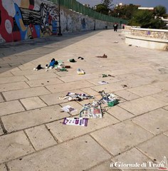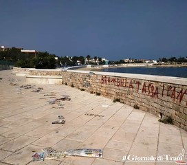 Ma a dare ancora più all’occhio sono i rifiuti abbandonati: cartacce, bottiglie di plastica e anche pericolose bottiglie di vetro. E da tempo qualcuno ha imbrattato i muri con inutili e brutte scritte, che rovinano ancora di più l’area, che era stata pensata per essere uno dei fiori all’occhiello del nostro lungomare.