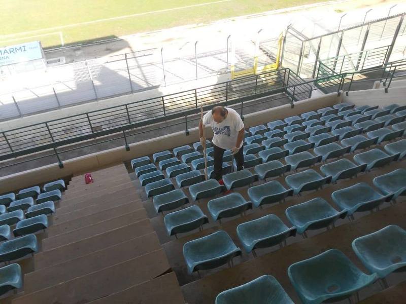 Questo ciò che la associazione sportiva sta già facendo: «Programmazione per la tutela e il ripristino dello stato ottimale del manto erboso; pulizia completa degli spalti; sostituzione dei neon danneggiati e non funzionanti nel tunnel degli spogliatoi; presa in carico dei piccoli interventi relativi all'impianto idraulico». Ci eravamo occupati recentemente del problema degli spalti: i seggiolini erano completamente sporchi, a causa di ammassi di escrementi di colombo.