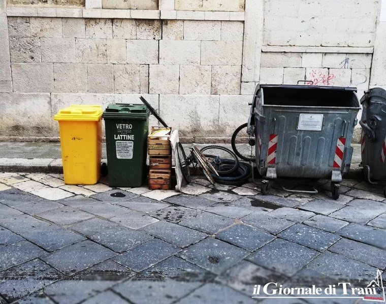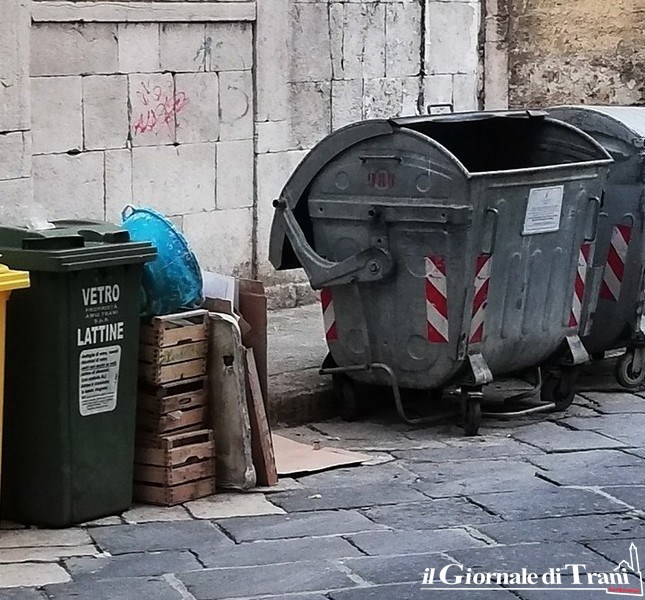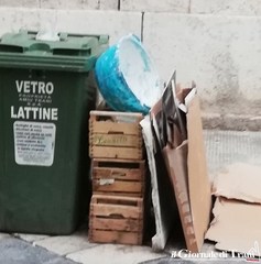 Fino a ieri, accanto, c'erano dei cerchi di biciclette, che stamattina sono stati rimossi. Il servizio di nettezza urbana si sta svolgendo regolarmente, ma le tre cassette, con dentro il materiale pericoloso, sono ancora lì.