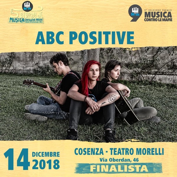 Dopo essersi classificati primi grazie alla giuria social, gli Abc positive sono ufficialmente finalisti della nona edizione di “Musica contro le mafie”, il premio musicale che si prefigge di presentare e promuovere nuove proposte e nuovi progetti musicali del panorama italiano, e offrire agli artisti e band partecipanti un’esperienza musicale e formativa utile per la costruzione di un percorso professionale nel mondo musicale e un importante riconoscimento all’impegno sociale, alla consapevolezza e alla cittadinanza attiva e responsabile.